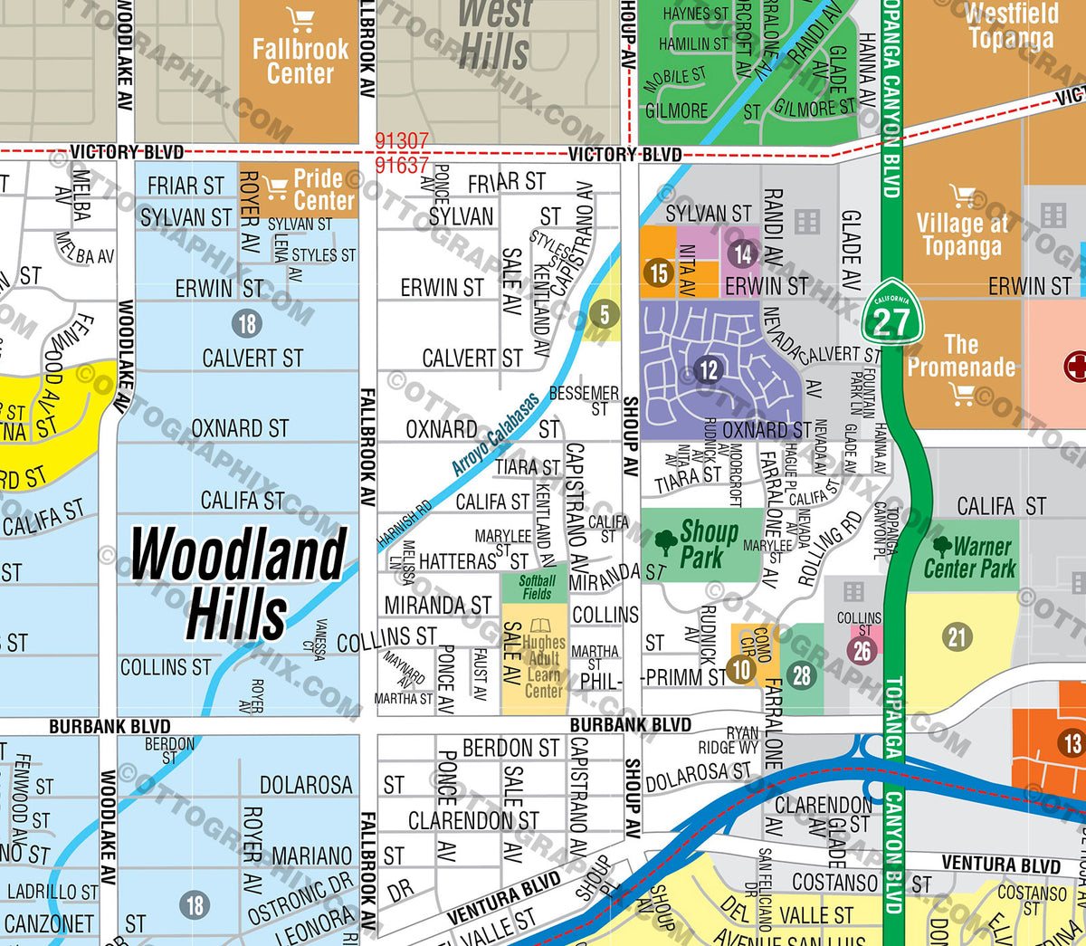 Woodland Hills Map, Los Angeles County, CA – Otto Maps